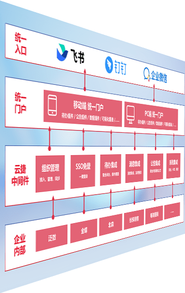 对协作平台提供支持服务,,,,支持企业应用与协作平台对接,,,包含组织同步、、、、消息集成、、、待办集成等。。支持目前主流的协作平台:钉钉、、、、企微和飞书。。。。